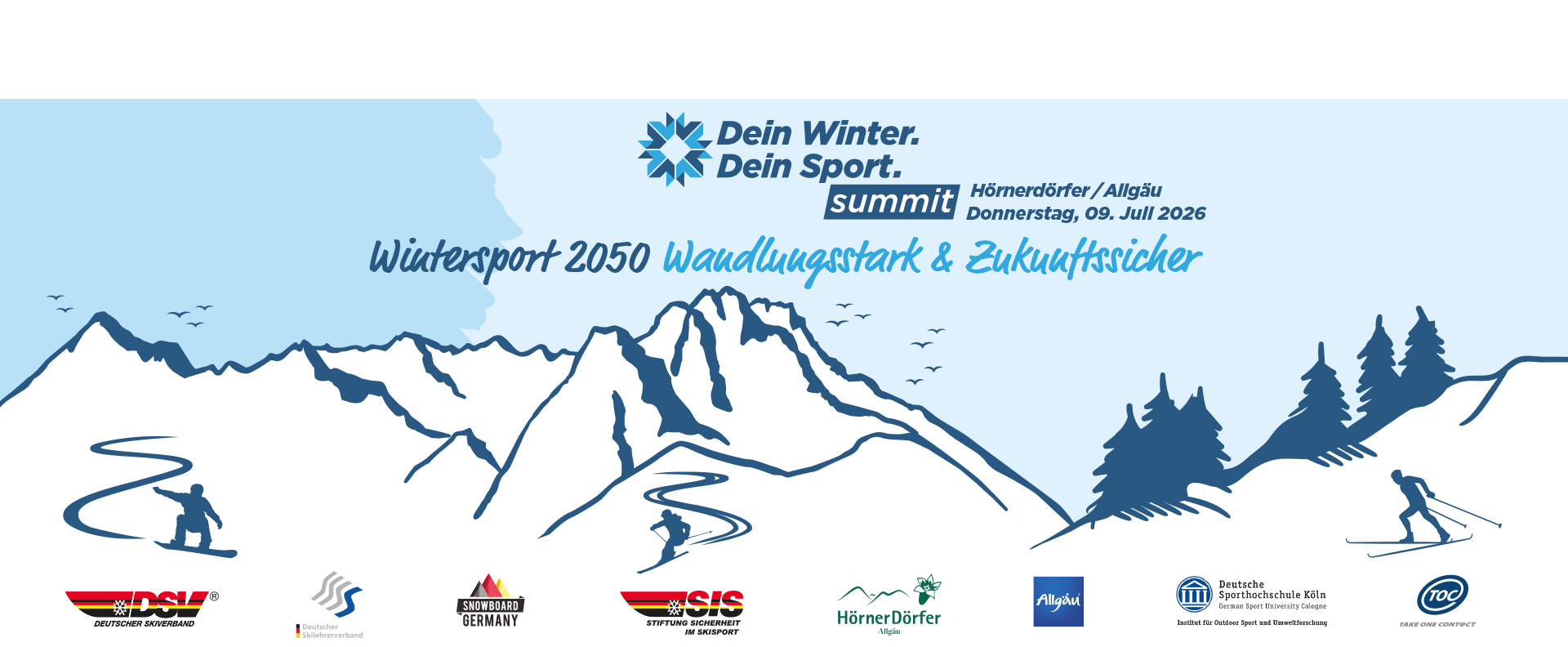 Bereits zum sechsten Mal findet am Donnerstag, 09. Juli 2026 (9:30 bis 17:00 Uhr), der Dein Winter. Dein Sport. Summit statt. Austragungsort sind die Hörnerdörfer im Allgäu. Der Kongress findet wieder unter wissenschaftlicher Leitung von Prof. Dr. Ralf Roth vom Institut für Outdoor Sport und Umweltforschung der Deutschen Sporthochschule Köln statt.